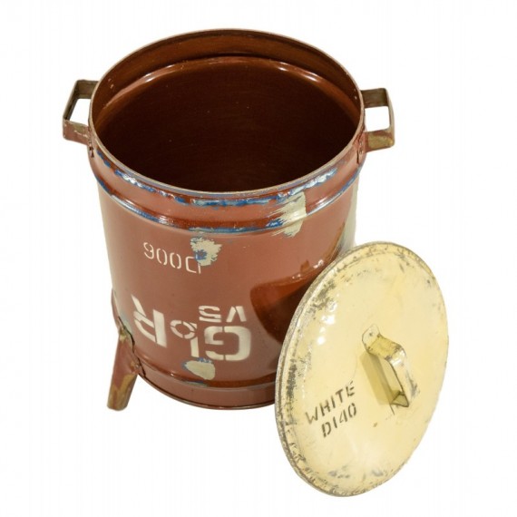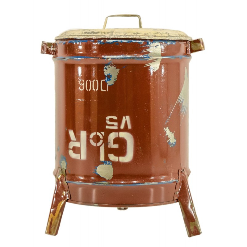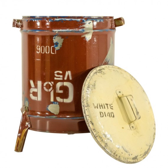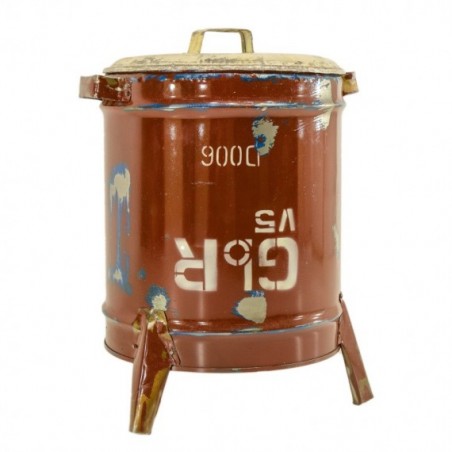 Poubelle ronde avec couvercle entièrement réalisée en métal recyclé. Ce superbe objet égayera votre intérieur.