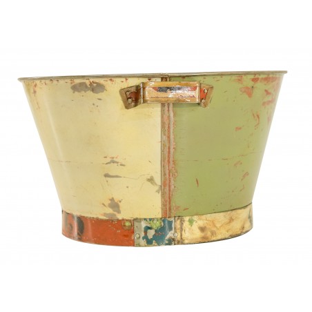 Bassine ronde avec hanses entièrement réalisée en métal recyclé. Ce superbe objet égayera votre intérieur et pourrait même vous servir de sceau à champagne!