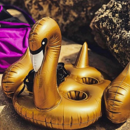 Affirmez votre style à l’extérieur avec Sunnylife ! Une piscine, des amis, de la musique, du soleil et… un cygne doré ! Ultra fun et branché, voici l’accessoire ultime pour les pool party. Ce porte-verres gonflable gardera vos verres au sec ! Docile et toujours prêt à vous servir, ce cygne doré peut porter jusqu'à 4 verres sur son dos. Pratique pour siroter un cocktail tout en vous prélassant dans l’eau… bonne ambiance et crise de fou rire seront au rendez-vous ! Vous pouvez aussi utiliser ce porte-verres au sec, posé dans l'herbe autour des transats.